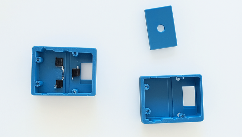 Now first we are going to download and print the 3mf files from the link at the end of this section. After printing we would have the three parts shown in the picture, a back cover, a front cover, a potentiometer holder tray and a potentiometer knob which is not shown in the picture.